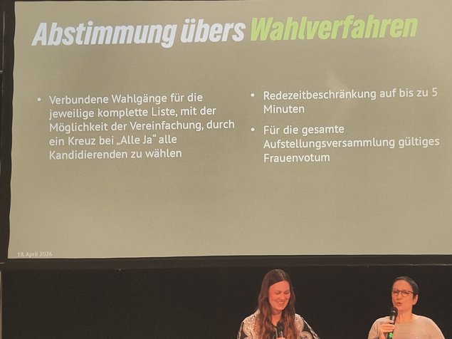 Am 18. April wählen die grünen Mitglieder die Kandidat*innen für die Kommunalwahlen im September 2026. Die Sitzung beginnt um 10:00 Uhr in der Jabelmannhalle. Die Wahl der zahlreichen Listen für die Gemeinden und Städte und die Auszählung der Stimmen wird einige Zeit beanspruchen. Nach dieser sogenannten Aufstellungsversammlung sind keine Änderungen mehr möglich.